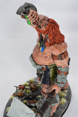 I just love the character that the sculpt has - the almost innocent look in the giant's eyes as he starts to scoff the poor hapless paladin. I figured that it would look great if the paladin had just been scooped up from his camp, part-way through cooking his own dinner, completely unaware of this monster that had turned up behind him - I wanted to use the tent to show the narrative in the model but also help give a sense of scale to the giant (it's easy to miss the paladin at first glance as you get distracted by the rest of the model). He was painted almost exclusively with Contrast paints, the great textures meaning they did a good job of adding depth to everything in a really quick and easy manner.
